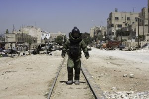 Still, the film is not without jagged edges.  While Renner’s performance is good, it’s also confused.  His Sgt. James is initially a simple character with a complex motivation, but as the film rolls James has his moments of breakdown, just as everybody does, and to be honest, they fall a little flat.  While I don’t really need to see another character emotionally exhausted, I in particular want to avoid it with James, whose adrenaline junkie, fearless, cavalier persona is the perfect contrast to all the other war characters we’re used to seeing.  What makes him interesting is his disinterest, and by breaking that down the filmmakers seemed to lose direction a bit.  Had James remained stalwart throughout, never feeling pain, never feeling loss, never feeling guilt, the character would have become the personification of wartime indifference.  He still has these moments: when we recognize his only real drive is his next fix, or when he sheds his protective gear and states like an Eastwood character, “If I’m gonna die, I’m gonna die comfortable,” but they’re diminished by his fallibility, and the lost potential is frustrating.