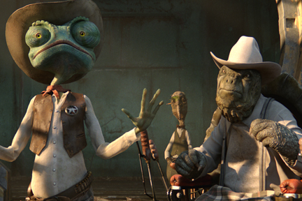 For an animated film to thrive, it has to do something we haven’t seen an animated film do before. Back in the early aughts this was far simpler, as computer-generated animation was still novelty enough to stand more or less alone if needed. But as more and more studios get into the remarkably lucrative game of computer-animated flicks, we’re seeing more and more films that flirt with other themes and genres. Cloudy with a Chance of Meatballs was more screwball comedy then kid’s movie, and the Neil Gaiman-sourced Coraline has a very eery and enjoyable darkness to it. This movement away from the center has not been lost on director Gore Verbinski in his first film in five years that doesn’t have Pirates in the title: Rango.