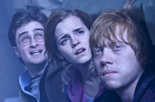 Watching these young actors grow—and not just the three leads, but all of the Hogwarts standbys—is a powerful progression. Surely these kids were cast for their looks, as the first few films do nothing to suggest any of them will become great, or even particularly good actors. Lucky for Yates and Co., a number of the younger characters have developed into legitimate talents. Rupert Grint and Radcliffe in particular seem destined to escape the shadow of the Potter series, a feat sure to make many washed up child actors jealous. And while Emma Watson has grown into a breath-taking beauty, her skills as an actor have remained listless. Her approach to Hermione has never strayed far from a vacillation between teary-eyed and incensed, and the character in the books simply has more to offer. Meanwhile, the Potter series has never lacked for stellar adult talent, and key elements Maggie Smith, Alan Rickman, and Ralph Fiennes are afforded ample room to aggrandize their characters’ respective swan songs. The character of Snape could be called the stories’ most complex, and Rickman does everything within his power to bring a satisfying close to his story. As for Fiennes, his Voldemort is as wonderfully despicable as ever. Yates’ understanding of the character’s imperial solitude is hugely important to the franchise’s ultimate payoff, and the two work together to sell it in the most palatable way possible.
