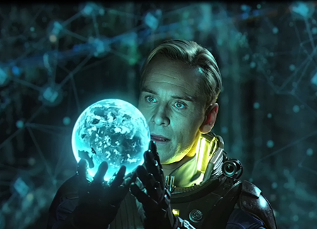 In 2089, archaeologists Elizabeth Shaw (Noomi Rapace) and Charlie Holloway (Logan Marshall-Green) discover cave paintings in Scotland that happen to sync with a variety of other paintings found all around the world, and from different time periods. The paintings are star maps, leading them on an expedition—funded by the man-behind-the-curtain magnate Peter Weyland (Guy Pearce)—to a life-sustaining moon light years from Earth. The mission is lead by the chilly Meredith Vickers (Charlize Theron), and composed of a menagerie of scientific and blue collar personalities, along with the eerily omniscient android David (Michael Fassbender). Their goal is to find the beings who left these star maps behind; beings that Shaw and Holloway believe “engineered” the creation of life on earth. In finding these Engineers, they look to ask the only question one can of their creator: “Why?”