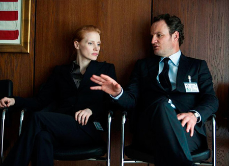 That said, neither the direction or the writing would get far without Jessica Chastain as the film’s focal point. We’ve seen Chastain play a number of roles in a number of films exceptionally well, though this is the first instance where a director has trusted her this completely to carry a film, and, predictably, she is equal to the challenge. While the real life CIA operative the character is based on remains undercover (and probably always will, as terrorists hold grudges better than most), personal accounts regard her as a no-nonsense loner with a singular focus. Chastain’s beauty and natural efficacy soften the hard edges just a bit, but this remains a character disinterested in building or maintaining friendships–disinterested in anything, really, besides her objective. Much of the film finds Maya exhausted yet incapable of anything save absolute tenacity, and Chastain wears this combination like a shroud. There’s a sense that Maya’s womanhood in room after room full of men is an added hurdle, though it’s unclear to what extent this is positioned to define the character. While it was surely a hardship for the real life operative, the film isn’t clear as to whether the resistance she meets is a result of her gender or her general antagonism. More often it’s neither, as her superiors’ reticence to act is born of a lack of hard evidence. Though there’s proof enough for Maya, gut feelings tend to die rather quickly when it comes time to make the hard decisions.